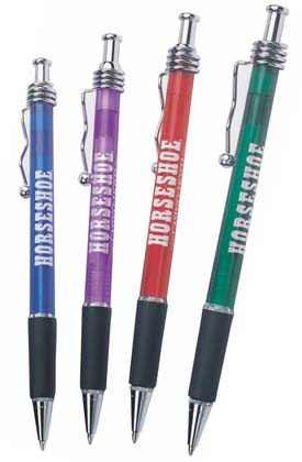 barrels highlight this stylish retractable pen.